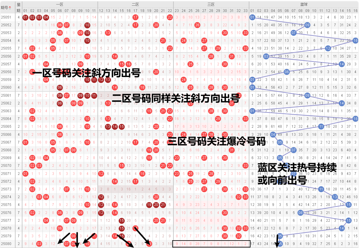 二区:二区号码根据走势,二区号码同样关注斜方向出号的情况,推荐关注17,下期可关注号码21。