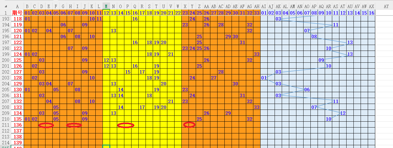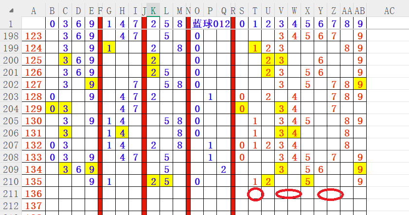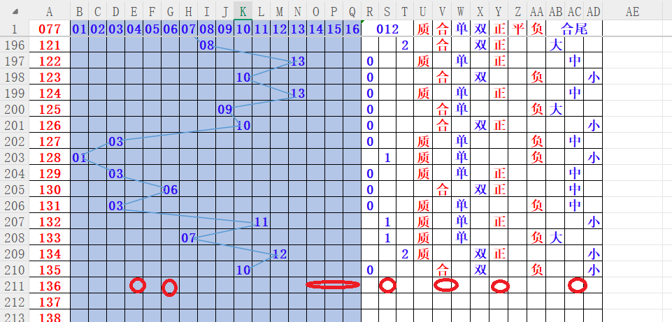 如上图4,012路分析012路,本期重点10路。重点     04 06 13 14 16