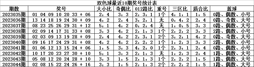 上期奇偶比为1:5,偶数较热,近10期奇偶比为29:31,奇偶红球持平,其中奇数红球热出4期,平衡3期,走冷3期,本期预计偶数逐渐热出,看好奇偶比为2:4。