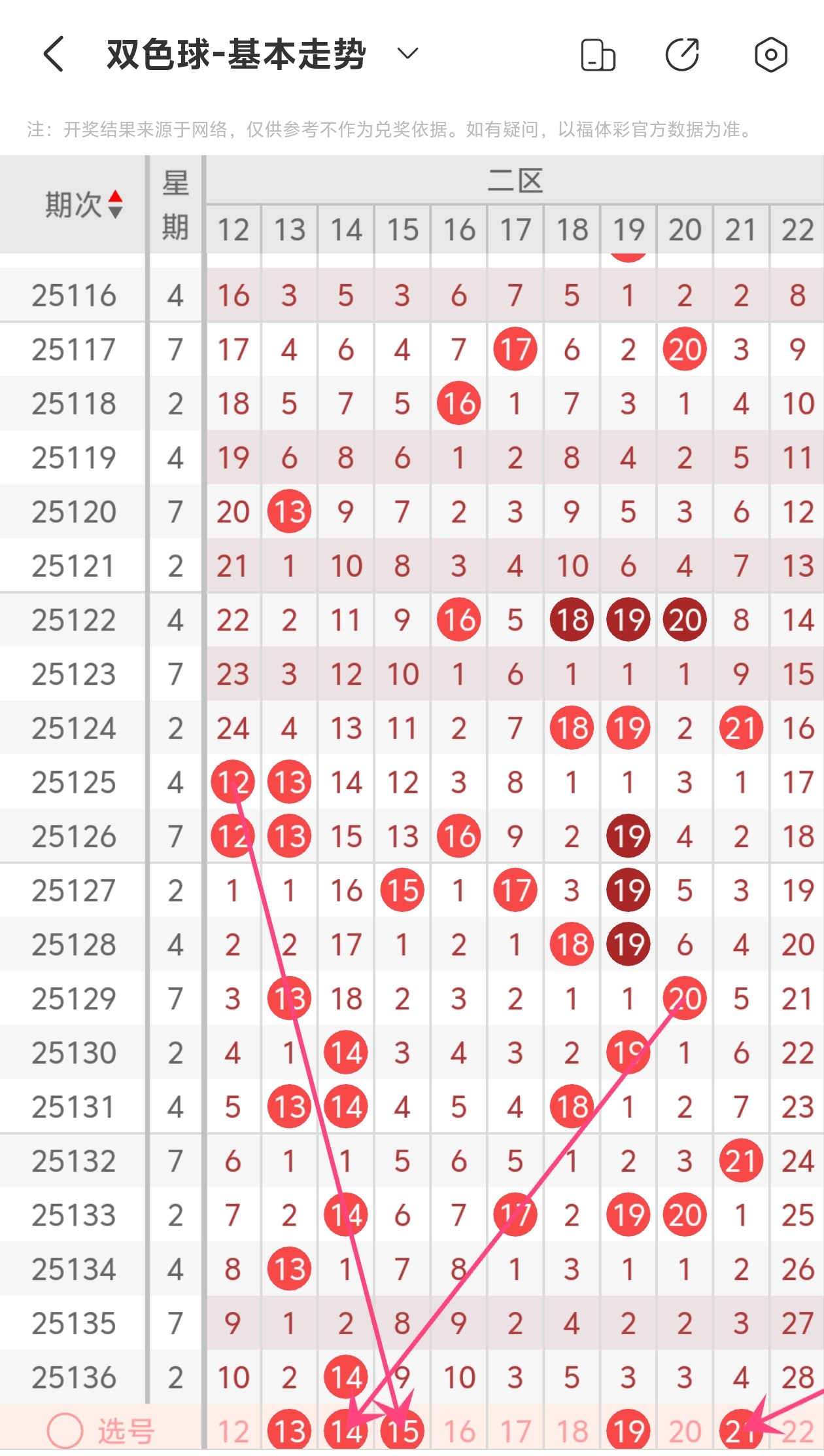 下面是我对2025137期福彩双色球的分析和预判,希望通过我的分析能让大家今晚大红!福彩双色球上期开奖号码如下图: