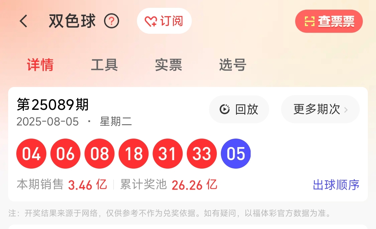 首先让我们回顾一下上期双色球25089期的开奖号码为04、06、08、18、31、33,蓝球05。和值100,跨度29,区间比为3:1:2,奇偶比为2:4。