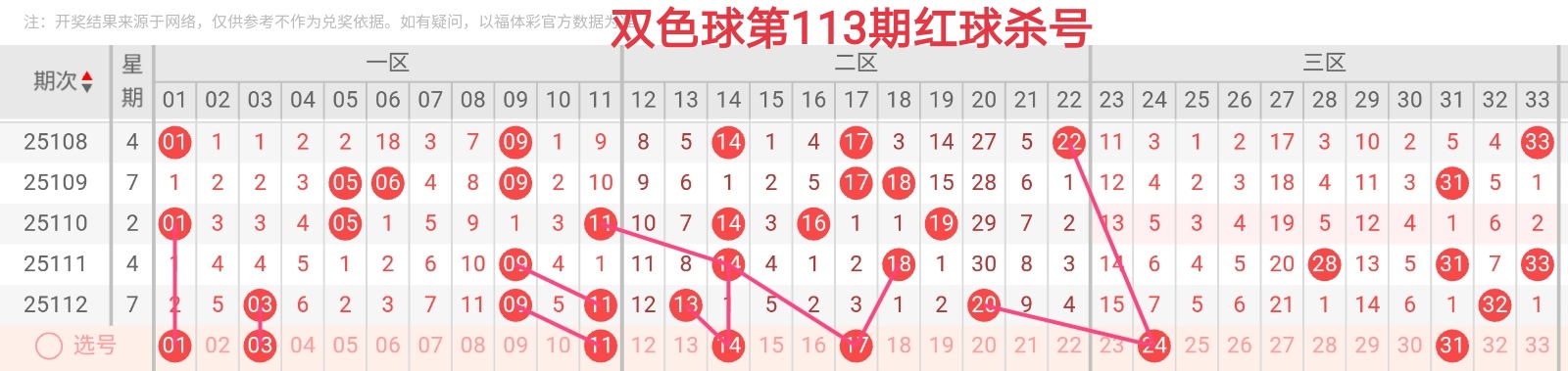 25113期双色球趋势杀号直播间可看选号条件+红蓝+杀蓝