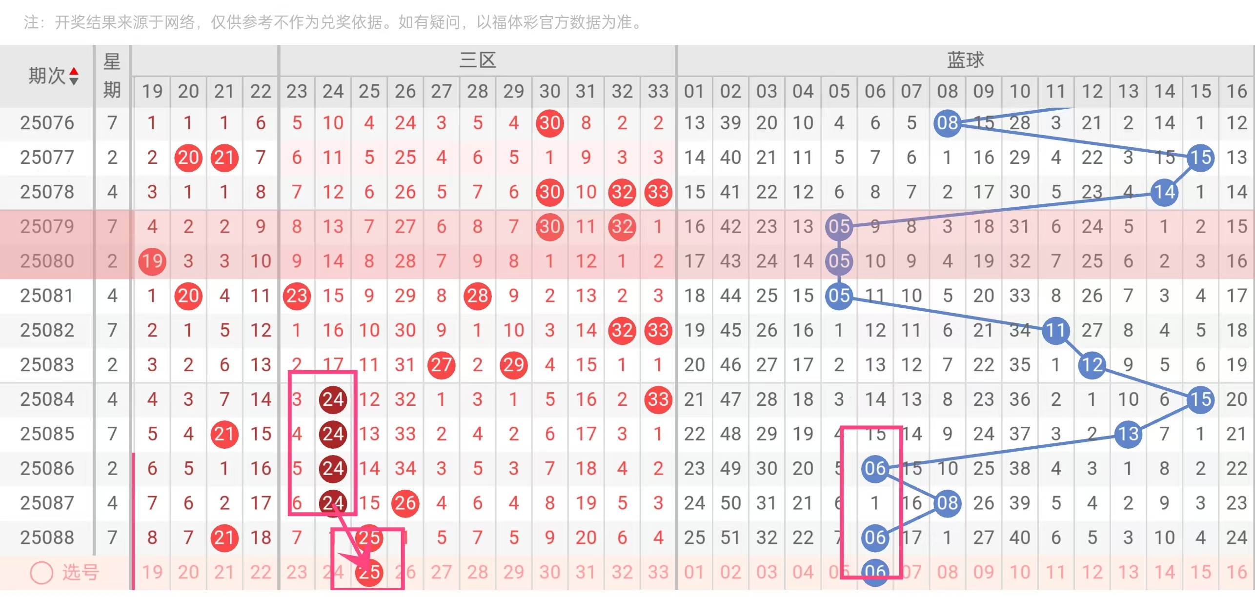 25:频率7次,遗漏值0(最近一期出现)。高频热号,遗漏低,安全选择。