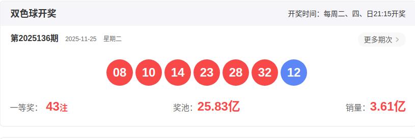 2025136开奖号码: