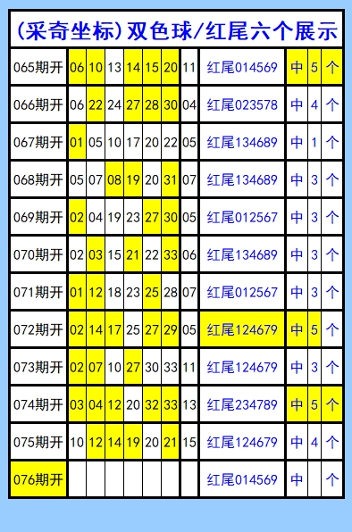 双色球第076期图文(采奇坐标),红尾六个推荐