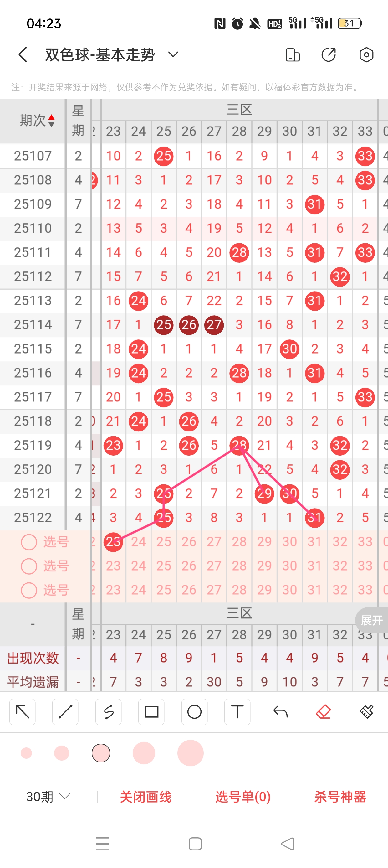 三区(23-33)近119期本区邻孤传45邻99孤6传,孤号热度高,本期着重邻传。近119期本区012路49:53:54,1/2路热度高,本着重0路。23已遗漏3期,与25之间呈现向左遗漏递减态势,需防。