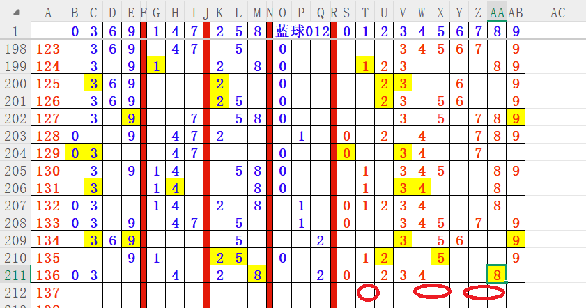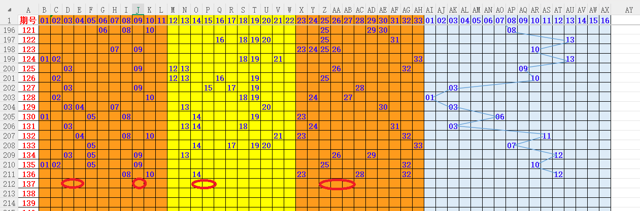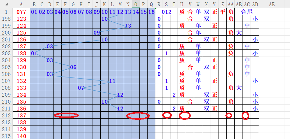 如上图4,012路分析012路,本期重点10路。重点 04 05 16 14 15