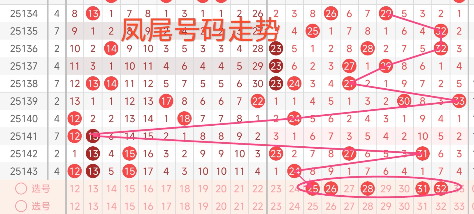 上期凤尾号码为24,振幅下降了7点,开出了偶数号码。回顾近期凤尾号码,振幅波动较大。上期凤尾号码为24,为偶数号码。根据近期凤尾号码走势来看,近期凤尾号码开出波动幅度较大,凤尾号码在红二区与红三区之间波动,上期凤尾号码开出属于红三区较小号码区域,预计本期凤尾号码会有所上升回补。本期还需注意一些连续漏出的冷码有望在本期热出。本期凤尾号码可重点关注25、26、28、31、32。