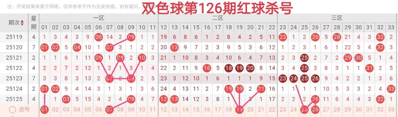 25126期双色球趋势杀号直播间可看选号条件+红蓝+杀蓝