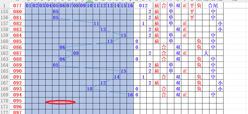 如上图4,质合分析,质数连续两期,本期重点合   03 04 05 06 07 关注 。