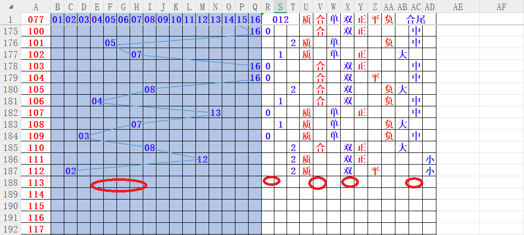 如上图4,质合分析,质数连续两期,本期重点合  03 04 05 06 07 关注 。