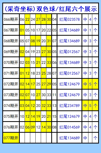 双色球第077期图文(采奇坐标),红尾六个推荐,视频上期中银胆09