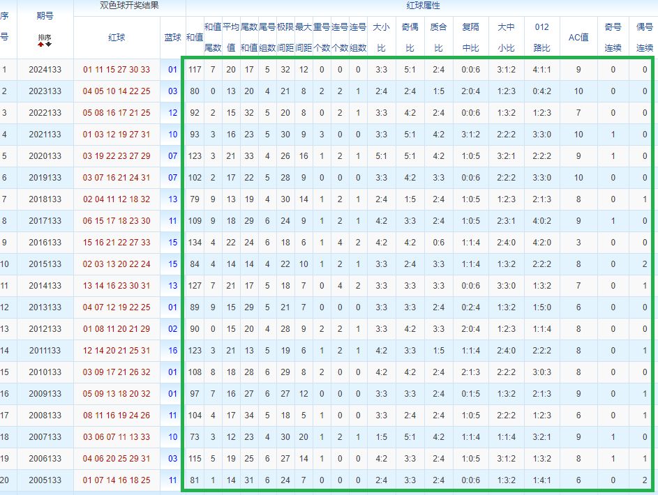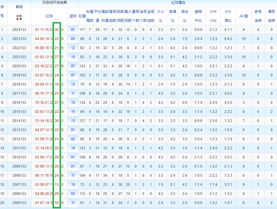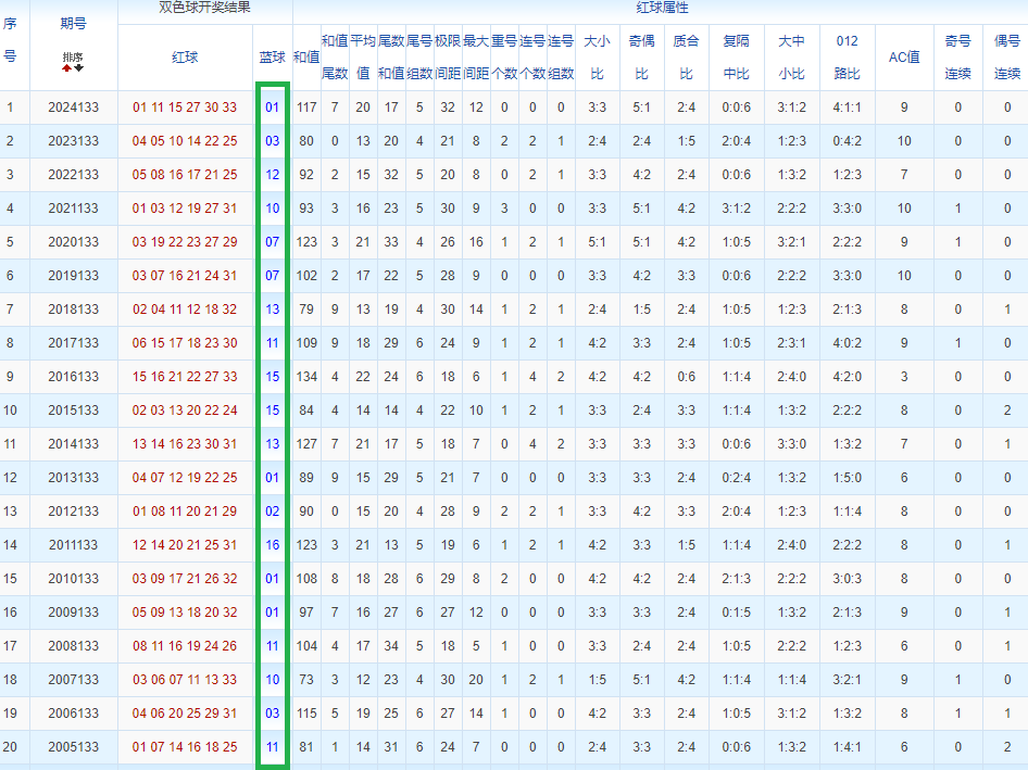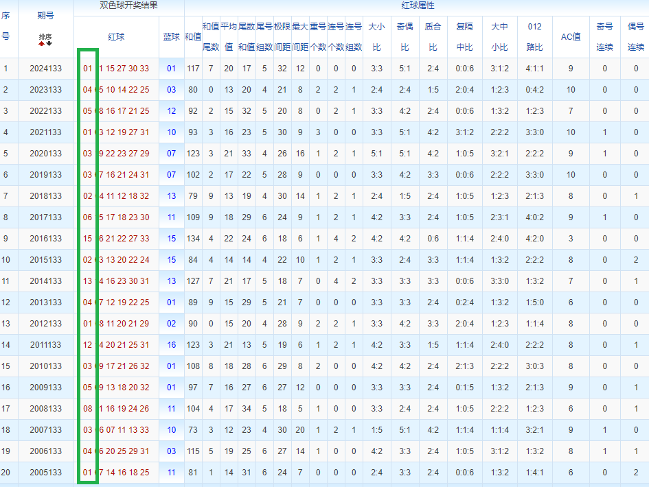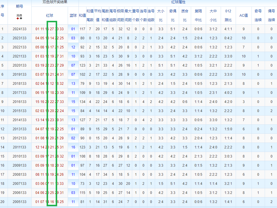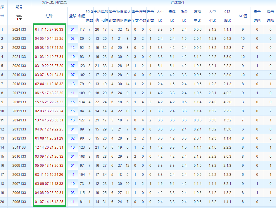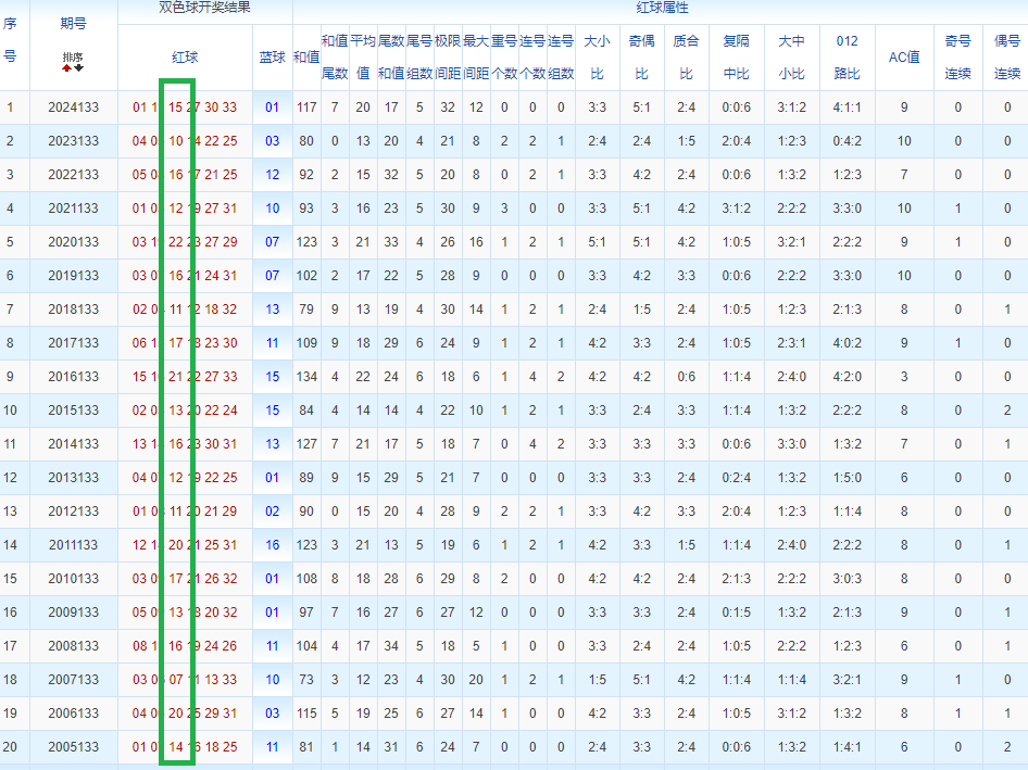 通过观察,我发现双色球往年同期的开奖数据与本期号码之间存在显著关联。具体来说,在红球中,从第一位至第六位,通常会有约4个位置上的数字与往年同期相同位置的号码一致;而蓝球号码中,也有多期开奖结果直接包含了往年同期的数字。因此,我们可以借助往年同期各位置上的号码,作为分析本期开奖情况的重要依据。在此基础上,还可结合往年同期的其他相关条件,进行综合性的号码组合推荐。
