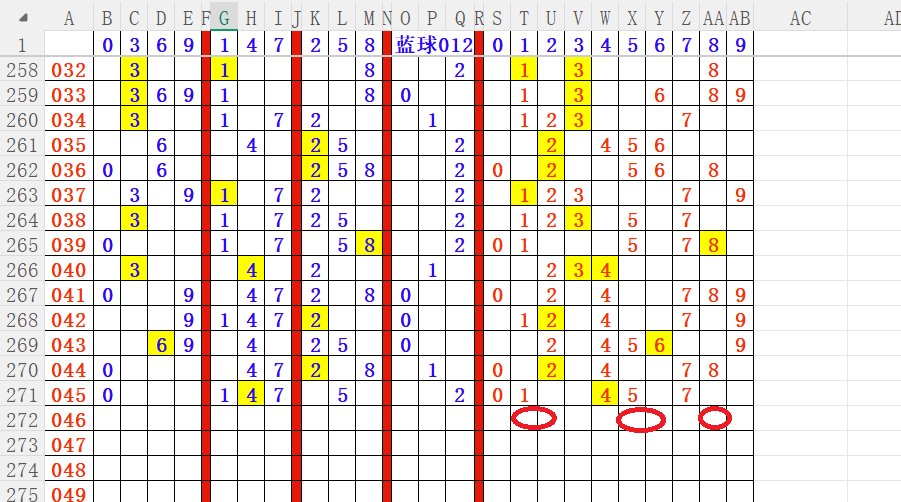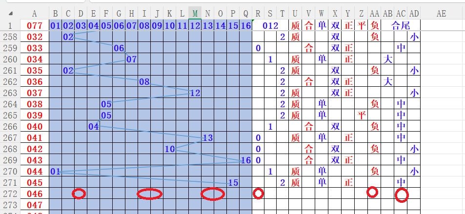 如上图4,012路分析012路,本期重点10路。重点 03 08 09 13 14