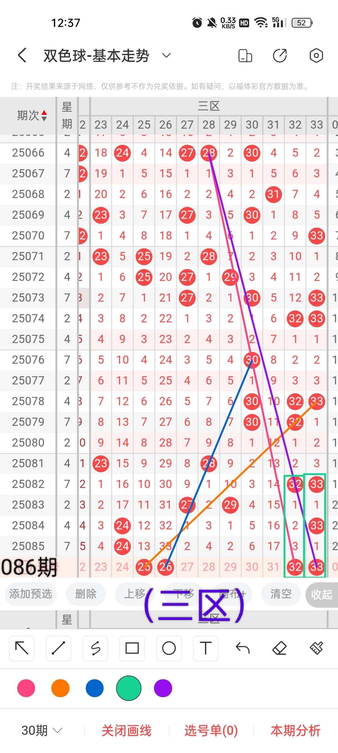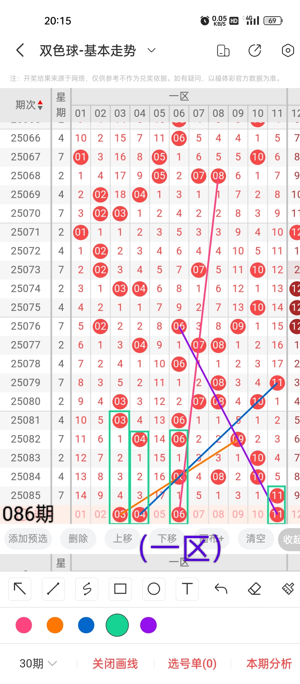 通过以上对上期的简单回顾,下面进入双色球第2025086期(下面简称本期)的选号分析: