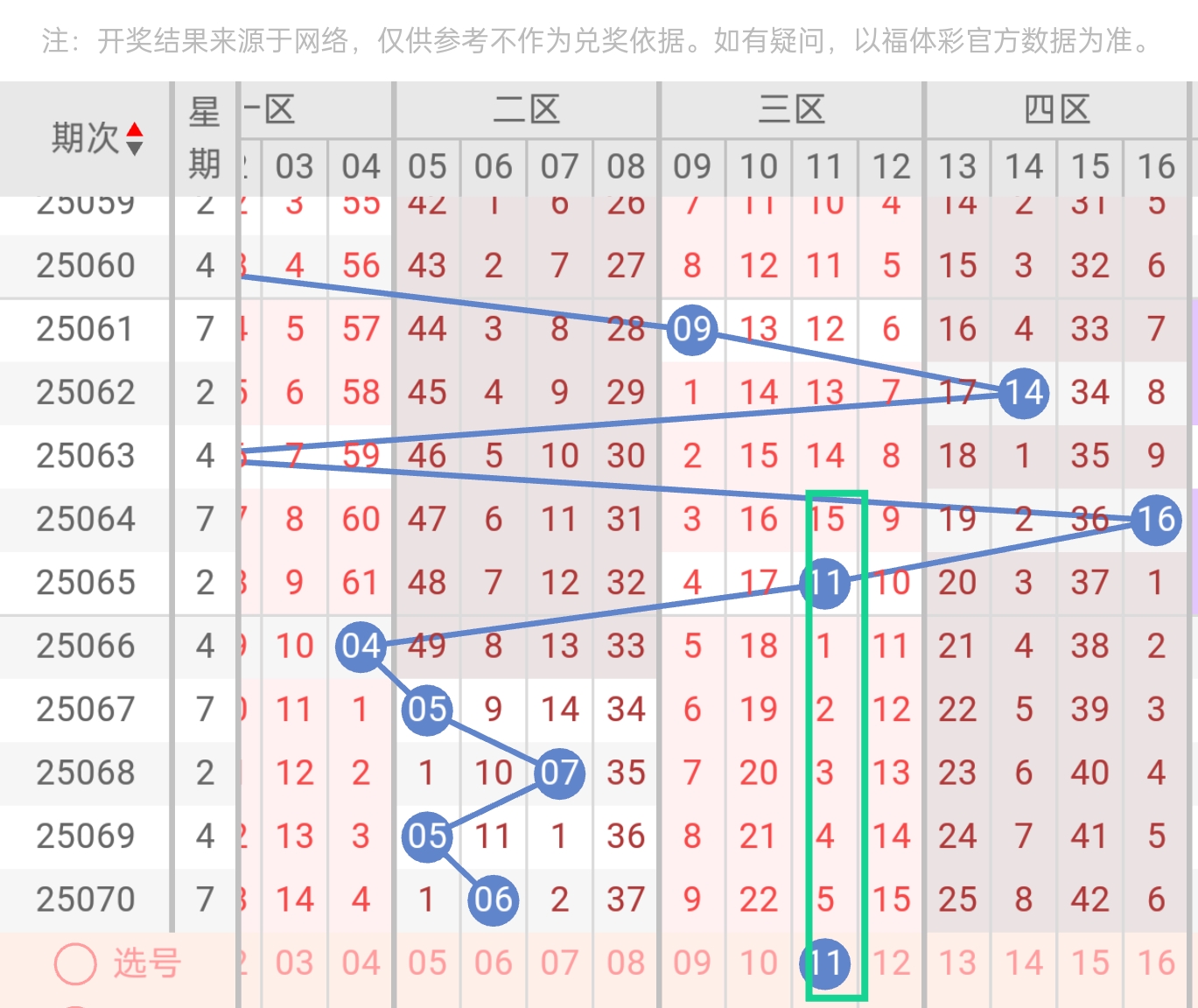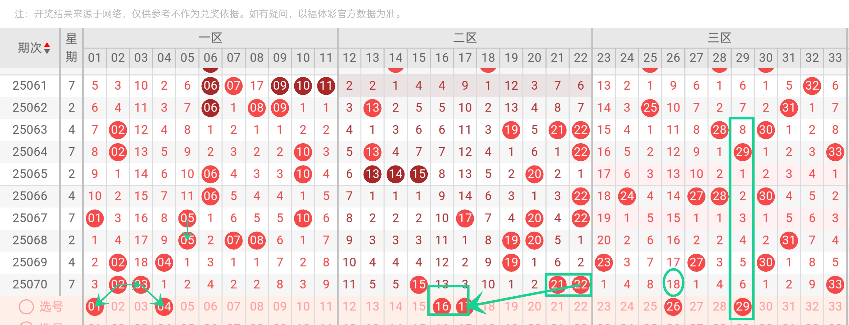 | 09 | 冷号   | 遗漏18期,中区冷号缺口。                      |