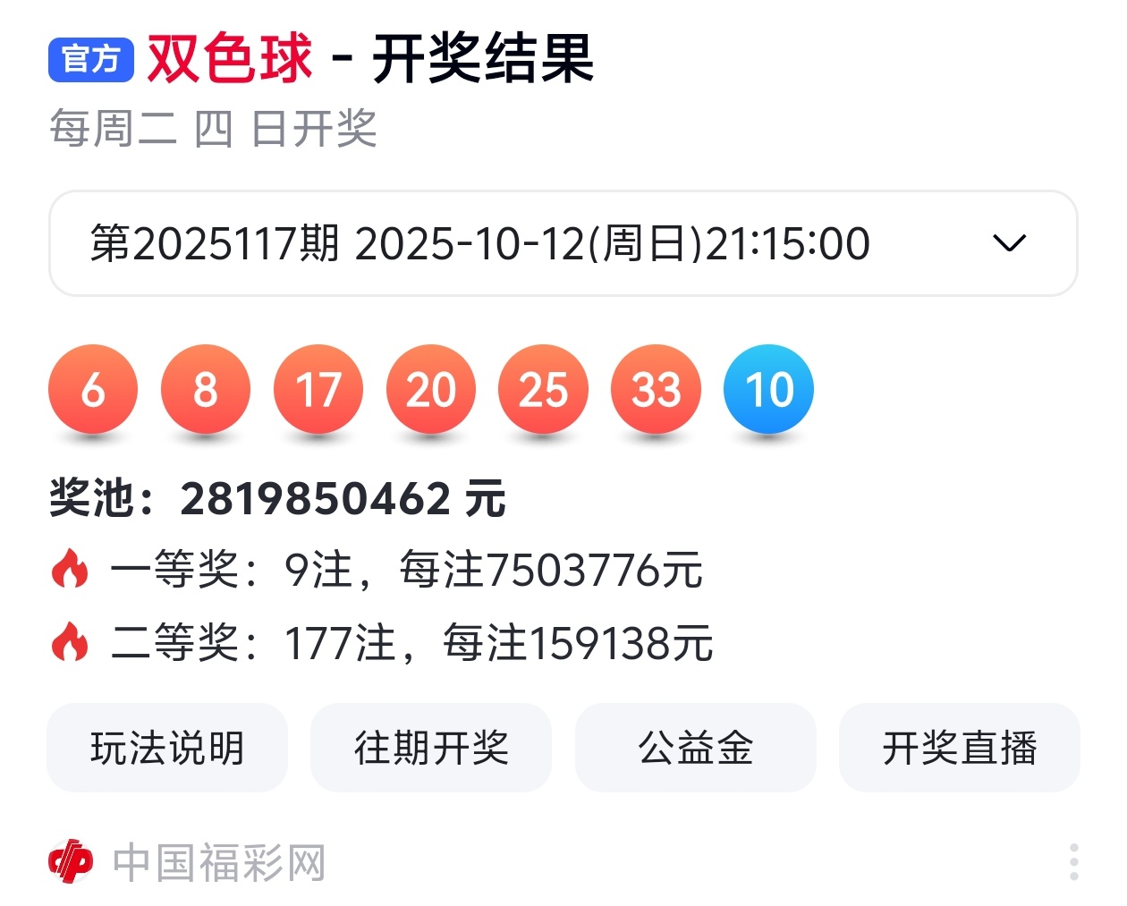 下面是我对2025118期福彩双色球的分析和预判,希望通过我的分析能让大家今晚大红!福彩双色球上期开奖号码如下图: