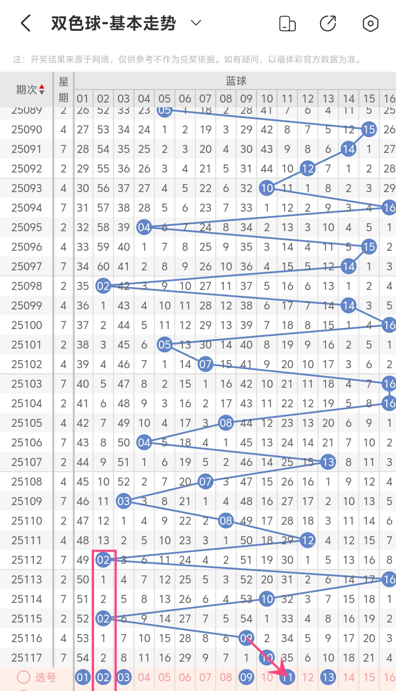 下面双色球的蓝球走势图分析: