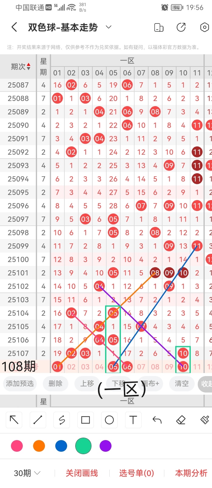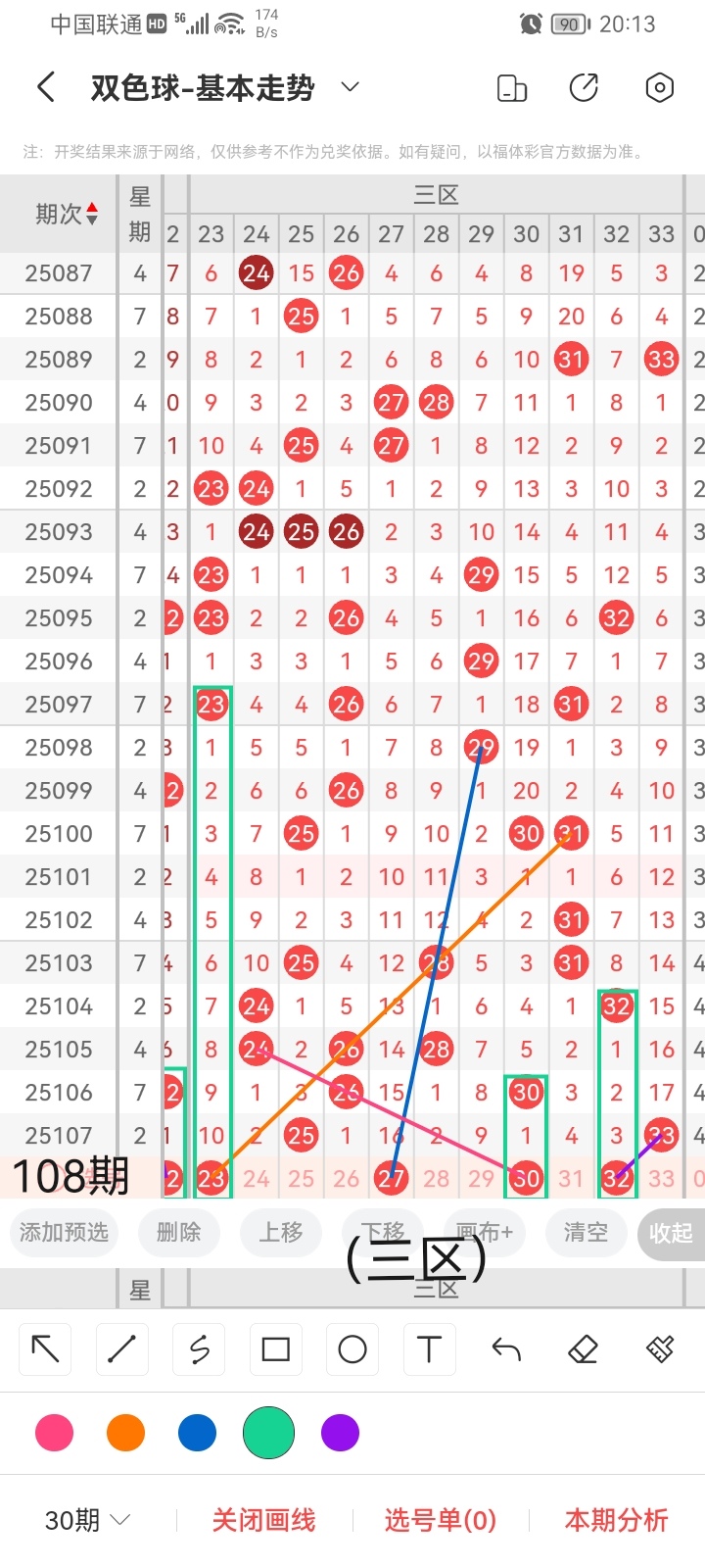 双色球:第2025108期走势分析