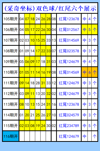 双色球第116期图文(采奇坐标),红尾六个展示