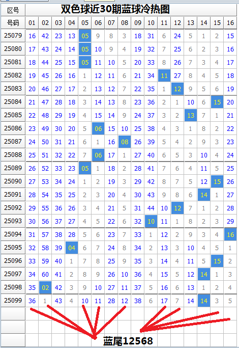 蓝球本期有热蓝7枚,冷蓝9枚,蓝球冷码数量稍多。上期开出热蓝,由于近期蓝球冷热交替开出规律不明显,本期蓝球冷热难定。