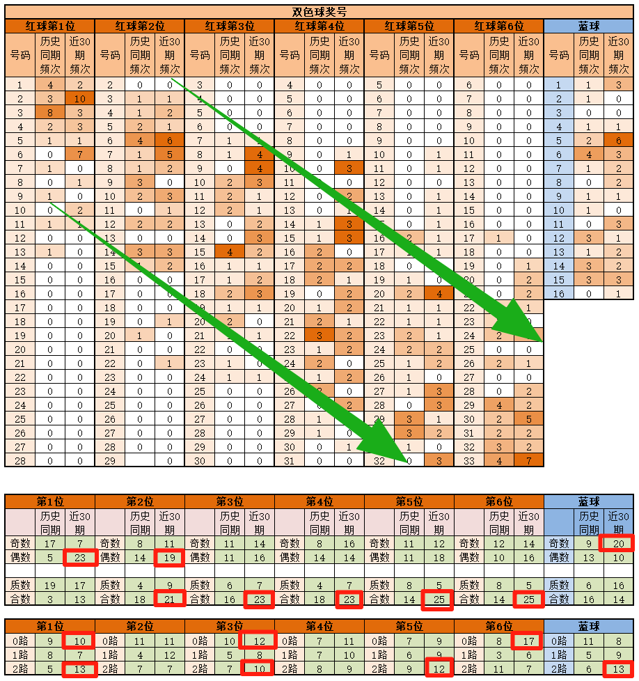 第6位,基本在21-33之间,历史同期频次最多的为29-33近30期,频次最多的为33明显特征是合数和0路优势;推荐重点30-33。