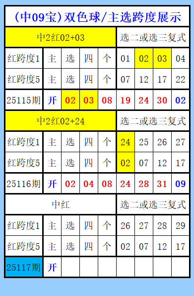 双色球第117期图文(中09宝),主选跨度展示,视频上期中4+1金红02两蓝09