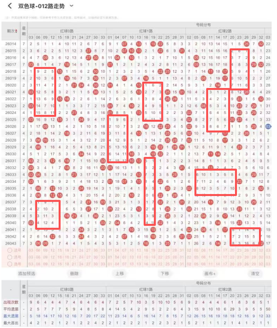 一、2026043期双色球条件分析(重号、连号、邻号、区间比):