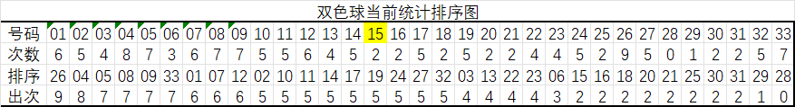 红球15码大底统计顺序:26,04,09,33,07,12,02,11,14,17,19,27,32,03,13