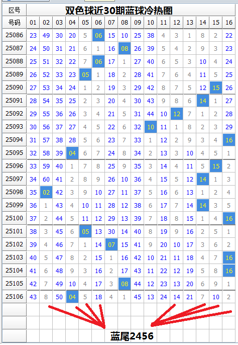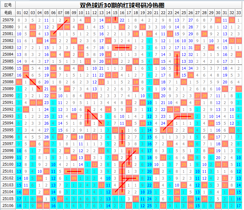 以下是双色球最近10期(25097-25106期)的推荐情况,更多期数的请参考往期文章: