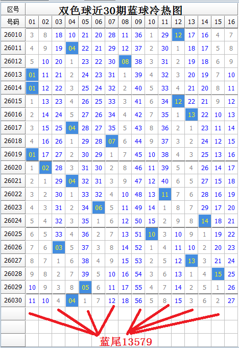 蓝球本期有热蓝10枚,冷蓝6枚,蓝球热码数量优势。上期开出热蓝,由于近期蓝球冷热交替开出规律不明显,本期蓝球冷热难定。