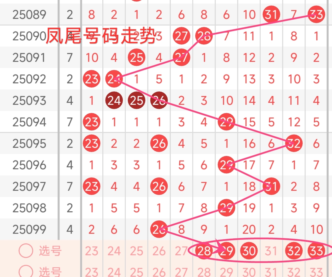 上期凤尾号码为26,振幅下降了3点,开出了偶数号码。回顾近期凤尾号码,振幅波动较大。上期凤尾为26。近期凤尾号码多在红三区之间波动,本期凤尾大概会继续维持在这个区间内,继续重点关注红三区。本期还需注意一些连续漏出的号码有望在本期热出。本期凤尾号码可重点关注28、29、30、32、33。