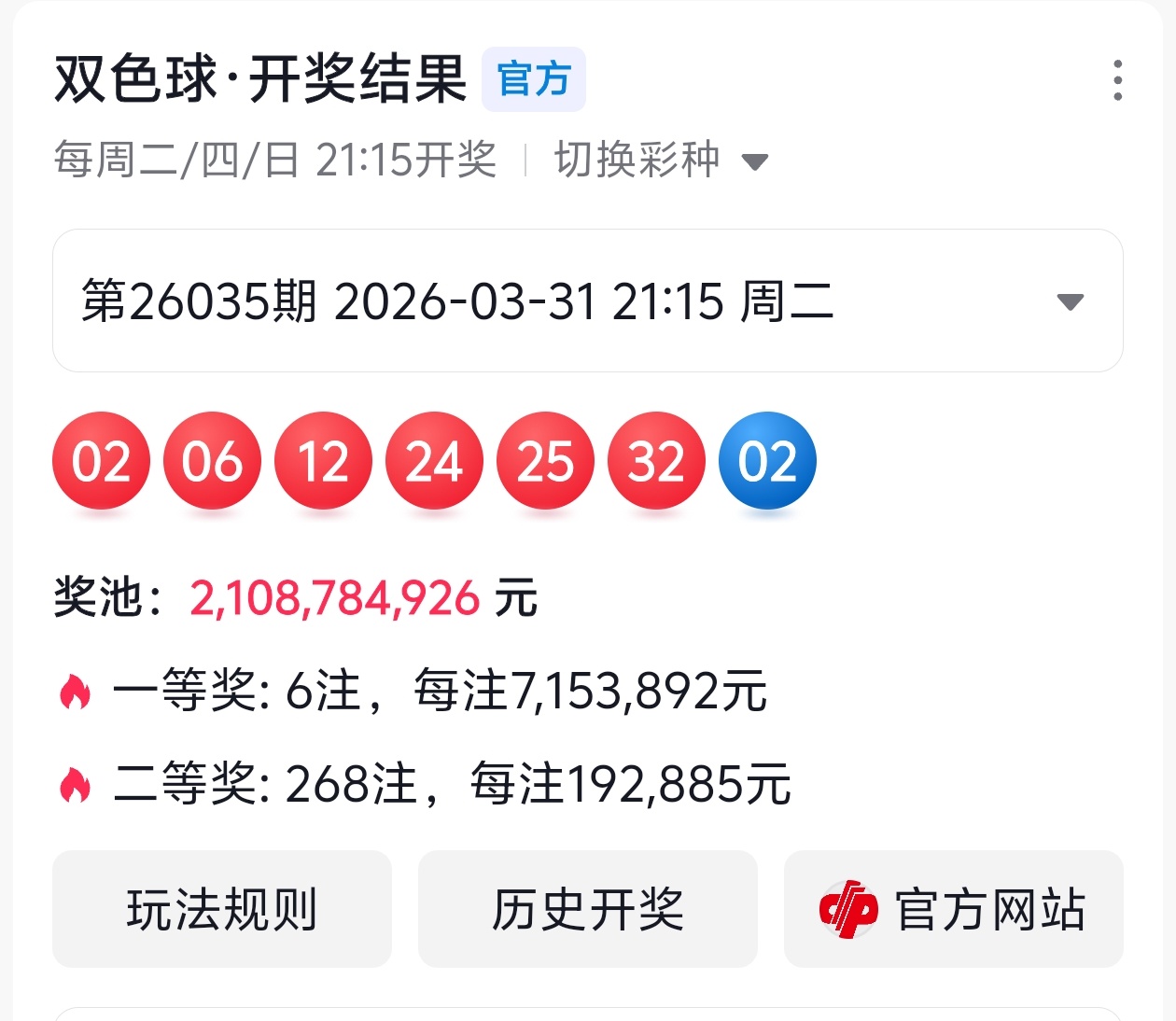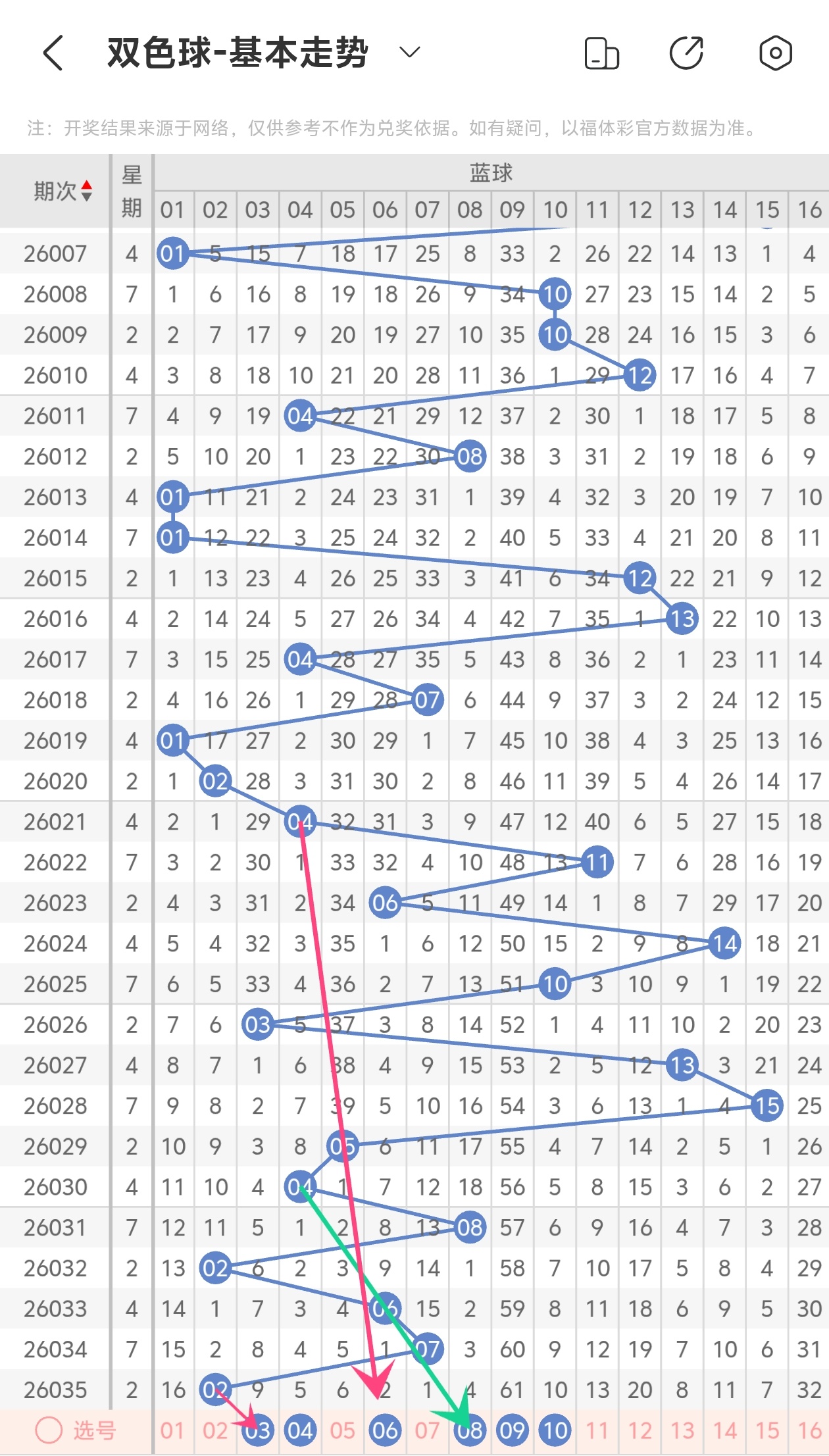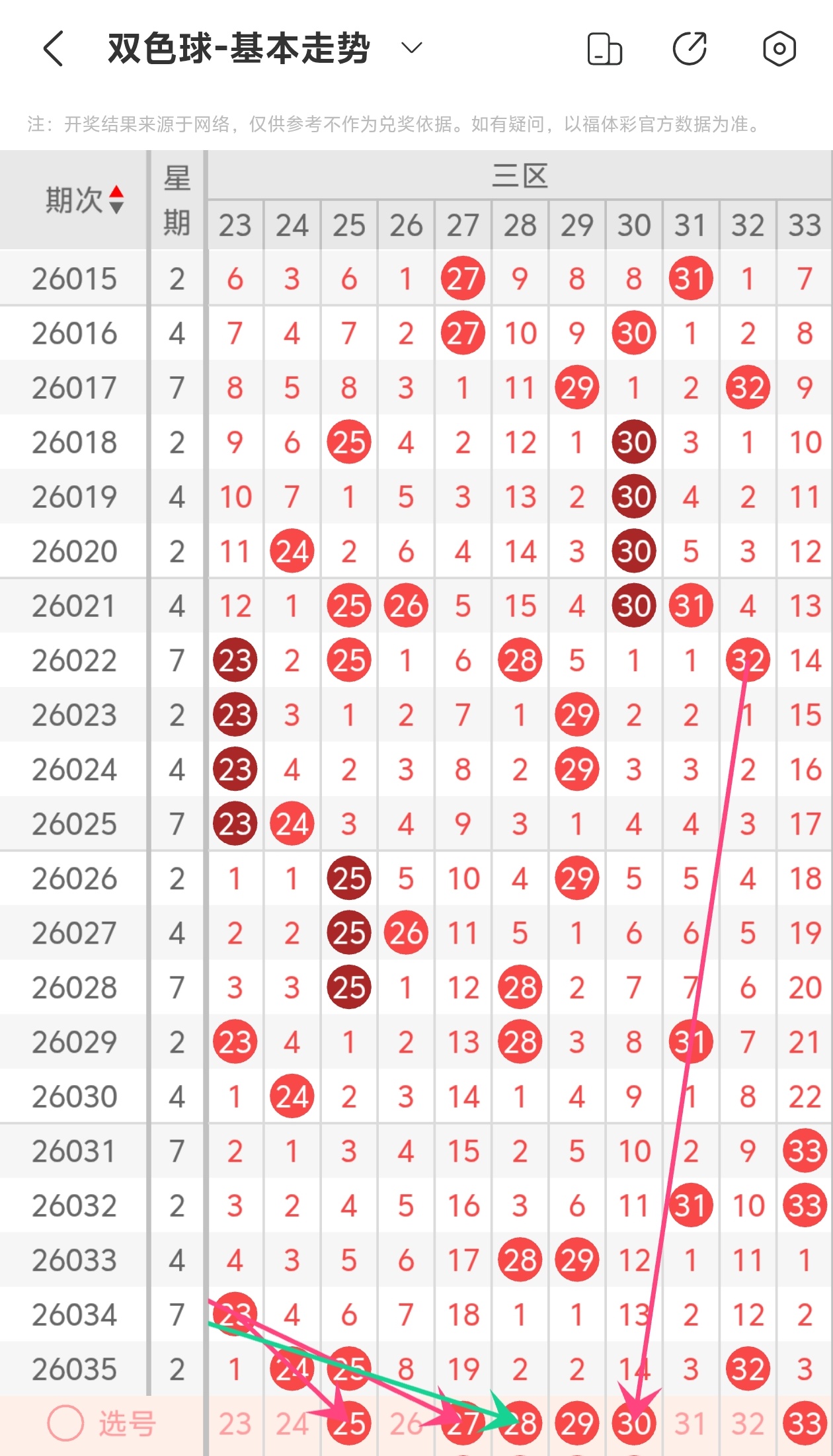 下面是我对2026036期福彩双色球的分析和预判,希望通过我的分析能让大家今晚大红!福彩双色球上期开奖号码如下图: