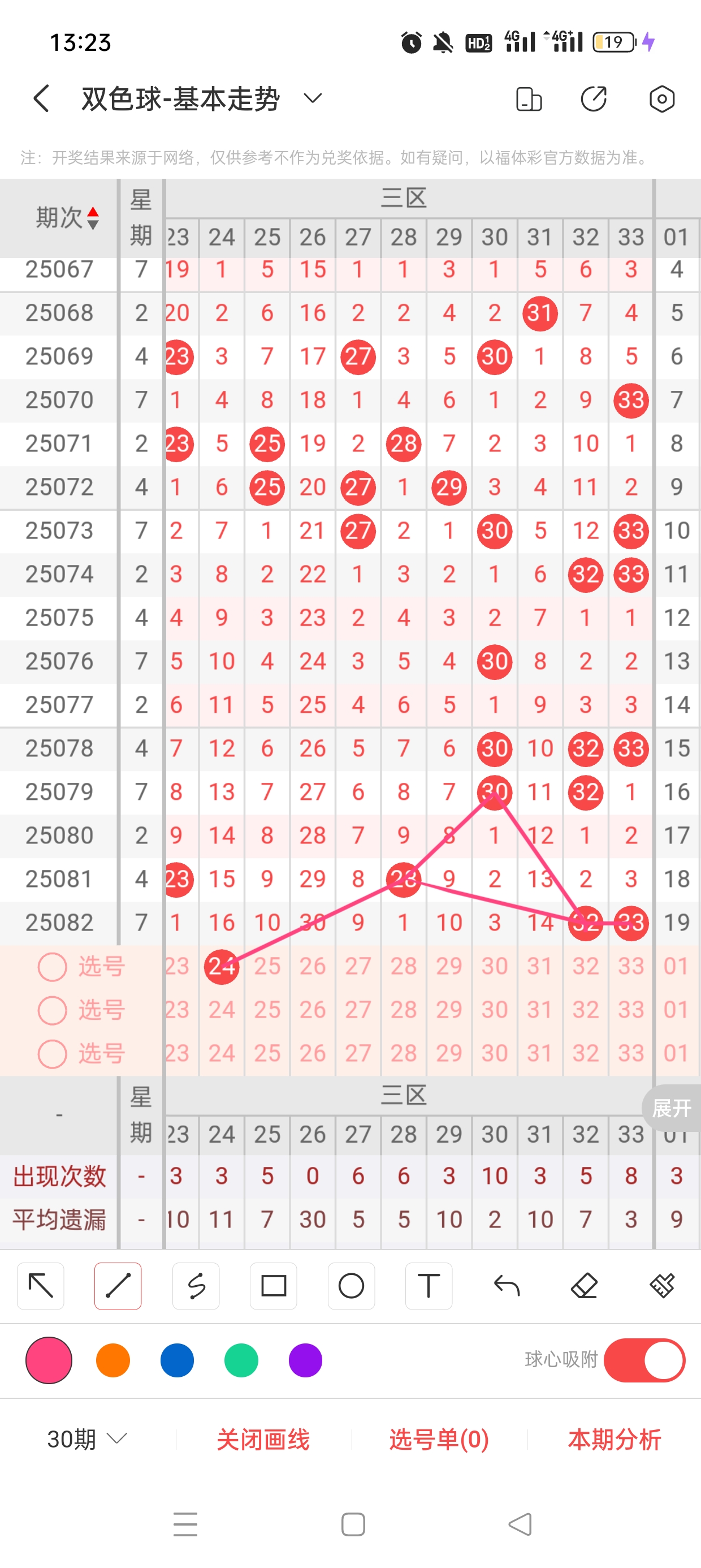 三区(23-33)近80期本区邻孤传32邻73孤6传,孤号热度高,本期着重邻传。近80期本区012路45:33:39,0/2路热度高,本着重1路。24已遗漏16期,与28之间呈现向左遗漏递减态势,需防。