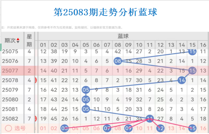 - 解析: 小、奇、0路、近期热号,符合蓝球近期的偏好趋势,是概率上的优选。
