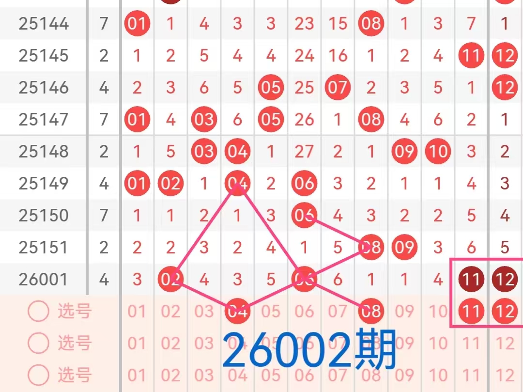 综上所述,本期前区可关注的号码有04 08 11 12 13 16 18 20 21 23 25 26 30 32