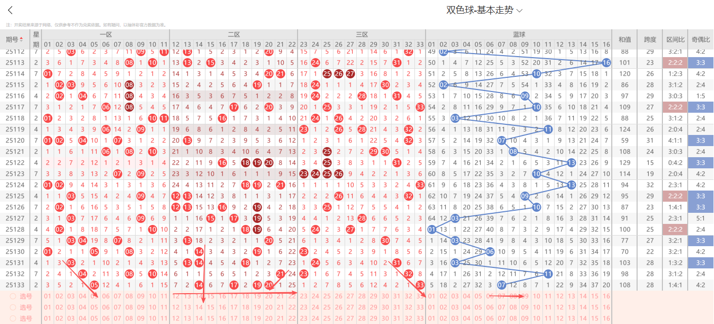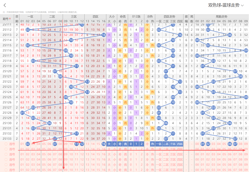 上期开出小号奇数07,从走势上号码整体分布结合折线运行轨迹本期蓝球重点关注五码02 07 11 12 16参考。有关更多详细选号思路以及号码组合搭配 我们15:00~17:30点有选号思路详细解析的直播节目欢迎大家前来一起探讨交流。