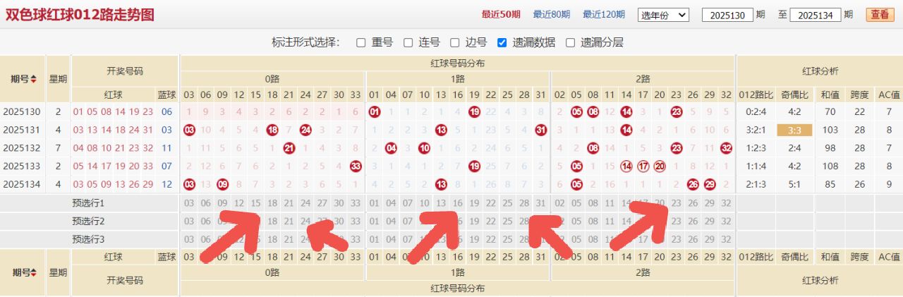 第二点对于本期奇数偶数热度比例的考虑,上期奇数号码占据绝对优势,奇偶比达到了5:1。回顾近期奇偶数的整体表现,奇数号码在多期中频繁出现,热度持续偏高,而偶数号码则相对沉寂。按照号码热度的周期性变化规律,本期奇数号码的热度很可能会有所下降,偶数号码则有望迎来反弹,实现冷热交替。因此,在奇偶数比例的考量上,应适当增加偶数号码的选号比重,以平衡整体奇偶分布。