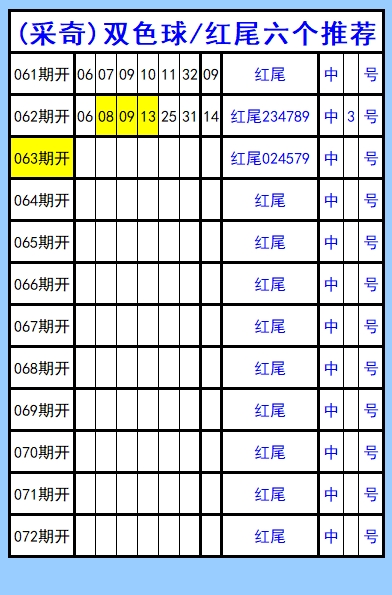 双色球第063期图文(采奇坐标),红尾六个推荐,精彩继续