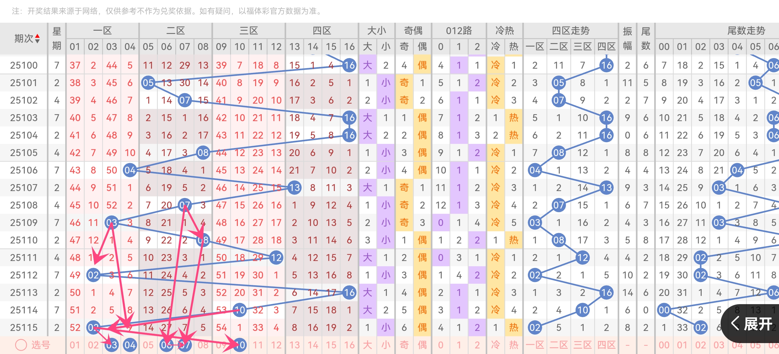 本期铁律 :近5年连续2期跨>25后,第三期跨度100%回落至11-19 (均值15)。锁定跨度区间12-16 ,重点13 (如最小号04→最大号17)。