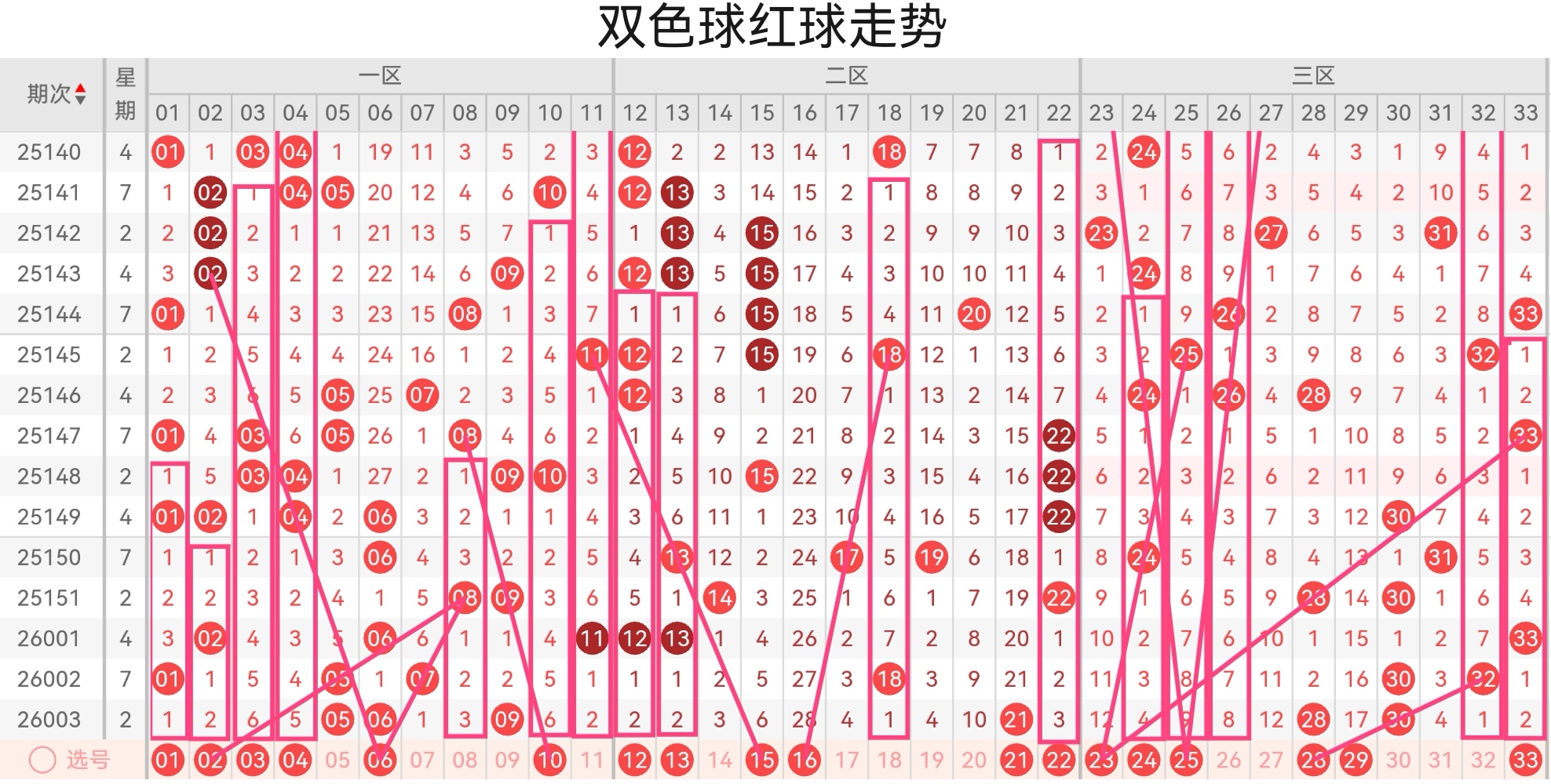 双色球第26004期基本走势分析如下: