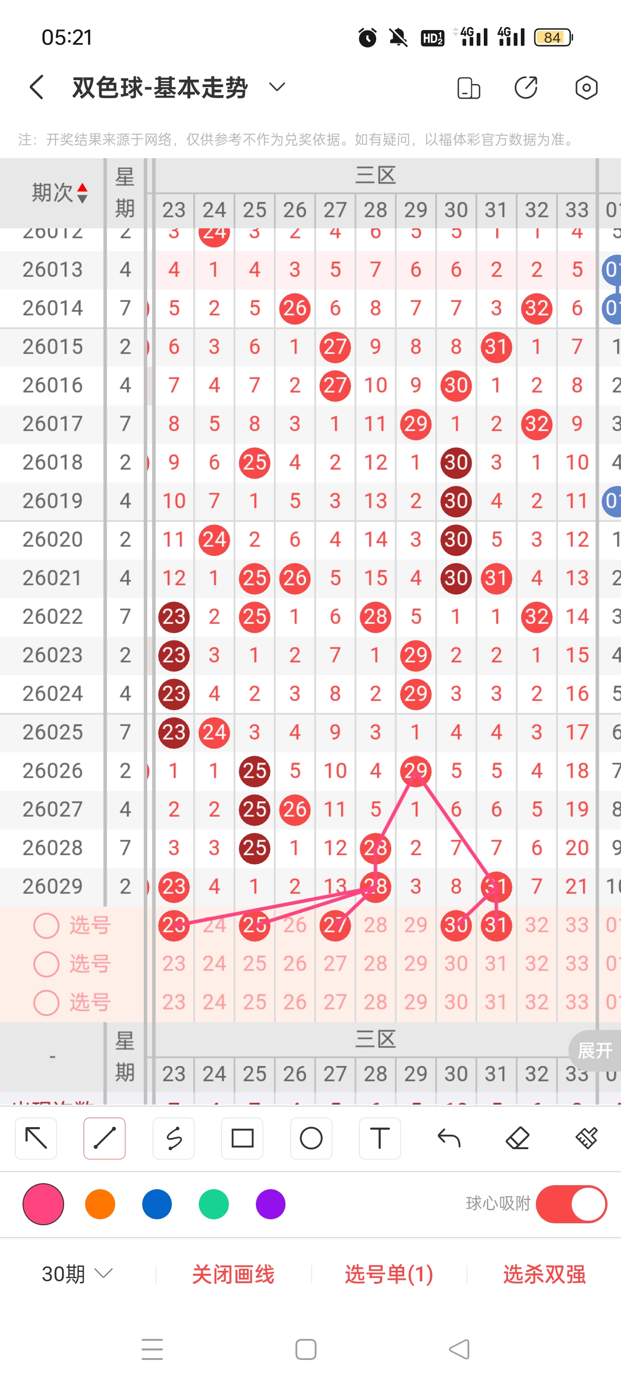 26029期开奖结果:6、19、22、23、28、31+5,奇偶比3:3,大小比4:2,和值129,012路141,邻孤传0邻5孤1传,同尾号无,传号28,连号22、23。总结完毕,下面开始本期分析。