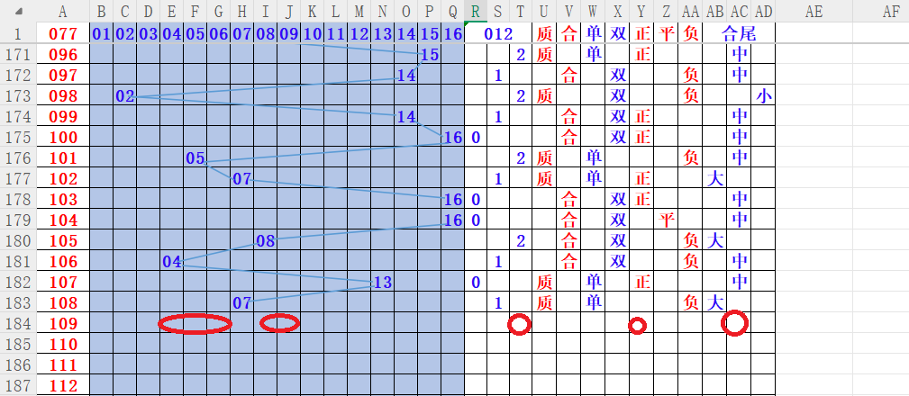 如上图4,012路分析012路,本期重点10路。重点 04 05 06 08 09
