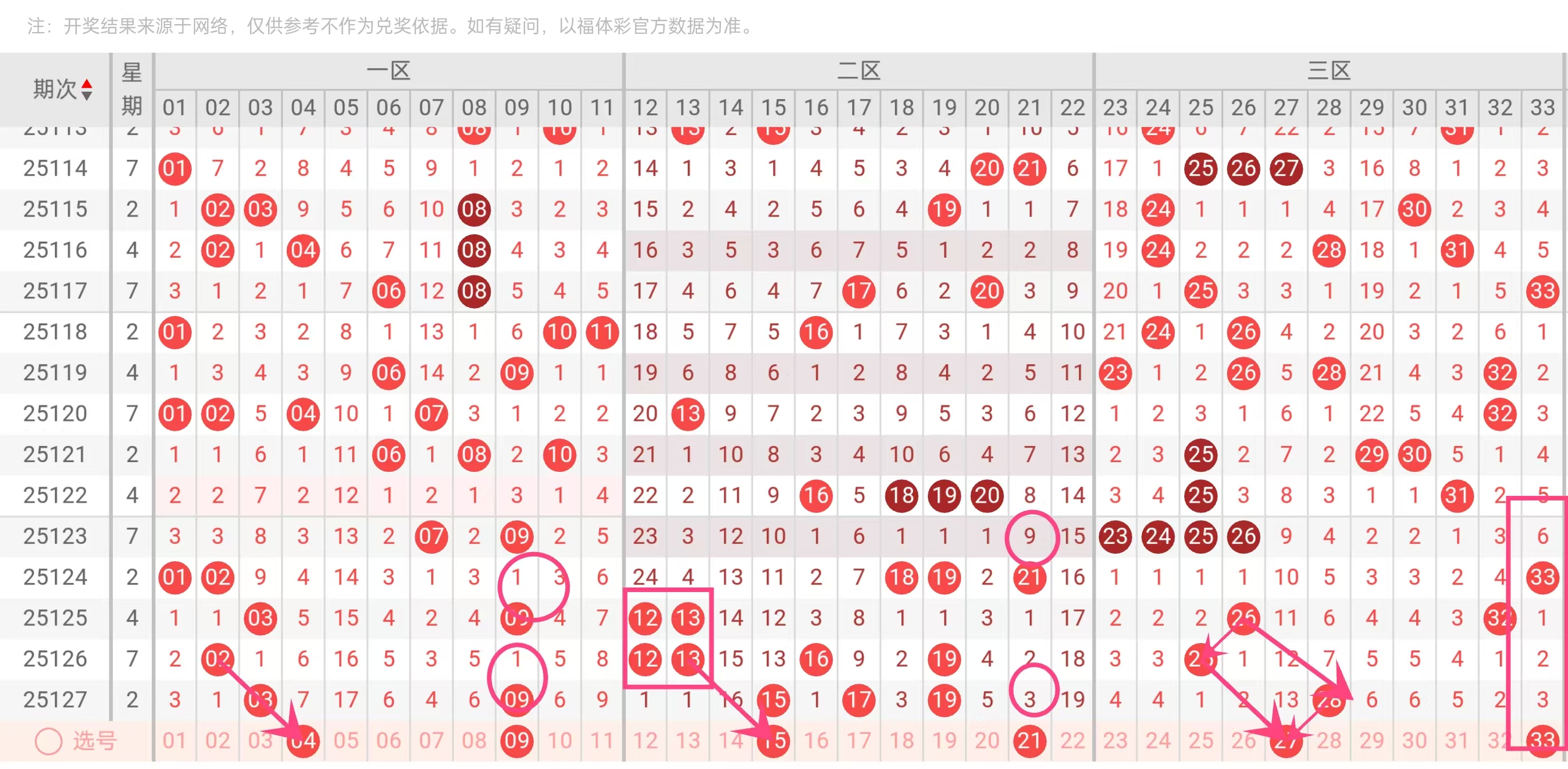 33号:最大号码33显示出明确的启动信号。在经过充分调整后,其回补需求强烈,各项指标均支持其近期开出。与常见的31、32号相比,33号作为冷号回补往往能起到出奇制胜的效果,是优化整体组合的重要变量。该号码在当前后区格局中具有独特的位置优势。