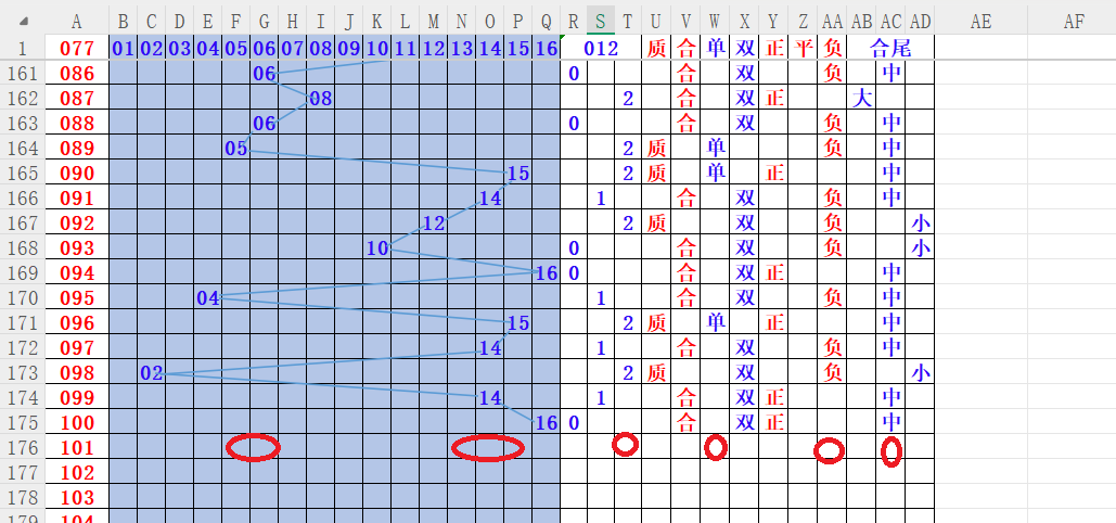 如上图4,012路分析012路,本期重点10路。重点 03 04 05 13 15