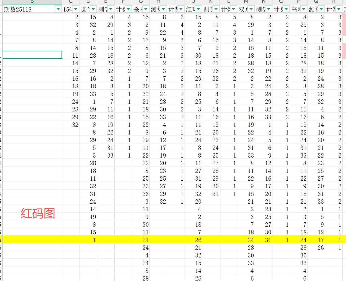 得出一组红码数据就是:2 3 4 7 8 11 14 15 16 18 19 24 28 29 32