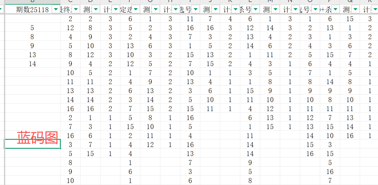 首先可以看一下蓝码的对比结果通过两个图表数据的对比,我们把蓝码的范围确定为5 8 9 13 14