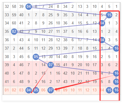 那么然后重点呢,还是要考虑这个蓝球16三重复,其次我们要考虑这个16的对称号码07,还有这个边号蓝15号,所以说07.15.16是大家重点关注的三枚蓝号。如果说要选一个的话,本期还是要考虑这个07,因为16的话,三重概率还是偏小了一点。
