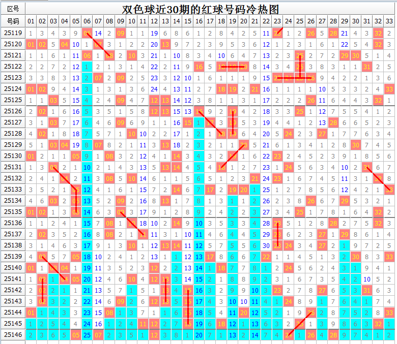 双色球146期冷热号码及出号趋势分析(具体号码可参见上图或会员文章的觅宝图):