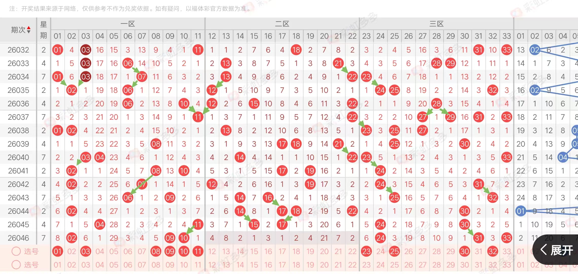 (三区:一区1-11,二区12-22,三区23-33)上期三区比3:0:3
